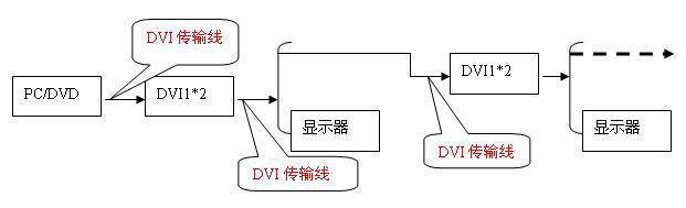C、 使用DVI/HDMI分配器和DVI/HDMI電纜進行級連傳輸;