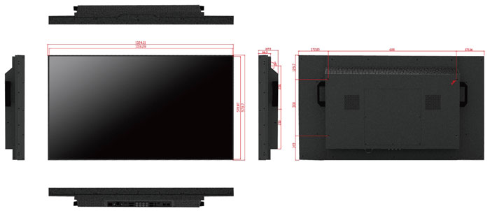 產品描述: 1、采用直下式LED光源技術顯示屏,亮度:800cd/m2、對比度:3000:1,500000:1; 2、超窄小拼縫在5.9/5.3/3.9/3.5mm,并具有邊框補償功能,高度還原真實畫; 3、高分辨率,單屏可達1920X1080P; 4、支持電腦集中控制,可通過電腦進行任意拼接單元參數調整 5、拼接方式多樣,支持橫屏拼接,也支持豎屏拼接,多信號分屏顯示,整屏顯示,任意組合顯示 6、信號接口齊全,支持CVBS、VGA、DVI、HDMI、YPbPr、S-VIDEO輸入,可接電腦和各種視頻設備 7、全金屬外殼,防靜電,防磁場,防強電場干擾 8、超長壽命,運行穩定,沒有任何灼傷、損傷,維護成本低; 9、全新的超寬視角延展技術,保證在上下左右178度視角內觀看到的圖像不變形,色彩無失真。 10、執行研發鋁合金箱體,內置了電源、驅動、接口、拼接處理器等集成化模塊 ,鋼化玻璃保護以避免碰撞脆弱液晶玻璃,科學的散熱系統設計,內置溫度控制報警模塊,是產品運行穩定安全 11、首家獨創“抗鋸齒流處理技術”,可使低像素圖像在全高清顯示屏中清晰再 現;去隔行處理技術,消除閃爍;去交錯算法,消除“鋸齒”;動態插值補償、3D動態數字降噪、3D梳狀濾波、10位數字亮度及色彩增強、自動膚色校正、3D運動補償、非線性縮放等多種國際領先處理技術;圖像邊框可選補償或遮蓋,全高清信號實時處理 應用領域: 監控中心: 公安、金融、能源、交通、煤礦、政府、企業等監控及指揮調度中心 公眾顯示: 機場、鐵路、地鐵、公路等交通行業、圖書館、博物館、動物園、商場等展示場所 商業演示: 電視演播廳、大型演出及商業會展、酒店大堂、企事業單位辦公大廳、會議室 科研軍事: 科研教育機構、醫療機構、軍事作戰指揮、氣象地理勘測 技術參數: 產品特點 外觀規格:
