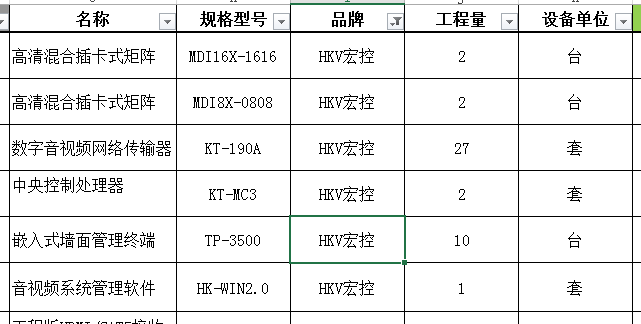 系統(tǒng)主要設(shè)備清單: