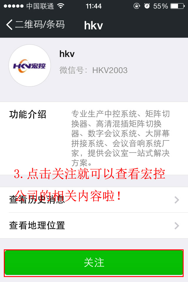 第三步:選擇關注宏控微信公眾帳號