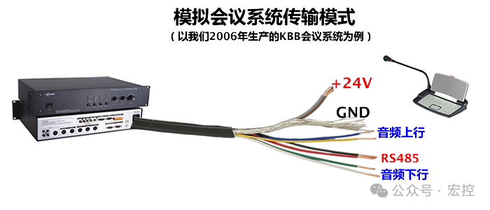 傳統模擬會議系統(使用專用多芯線) |